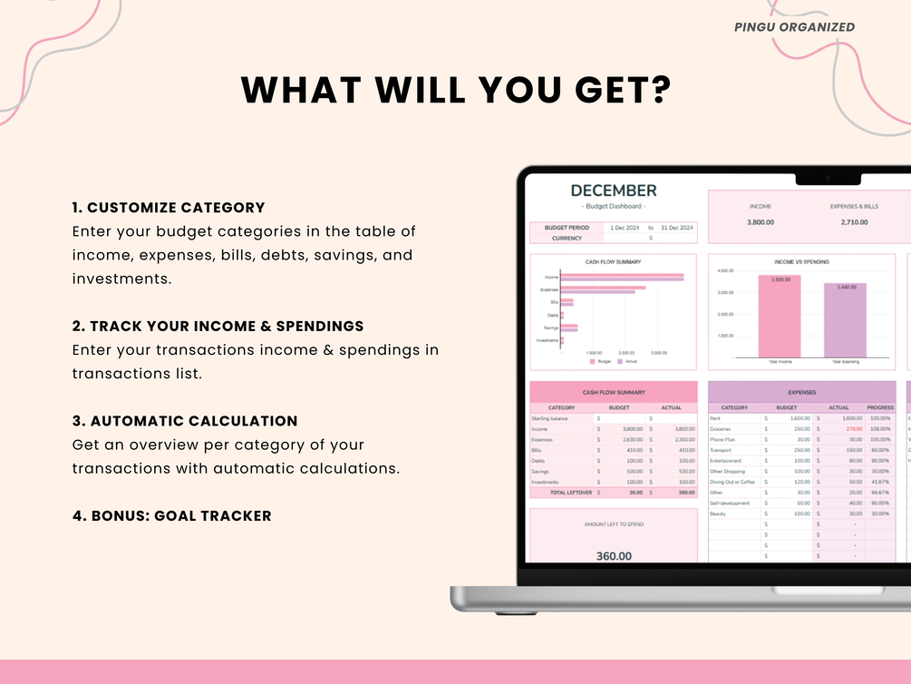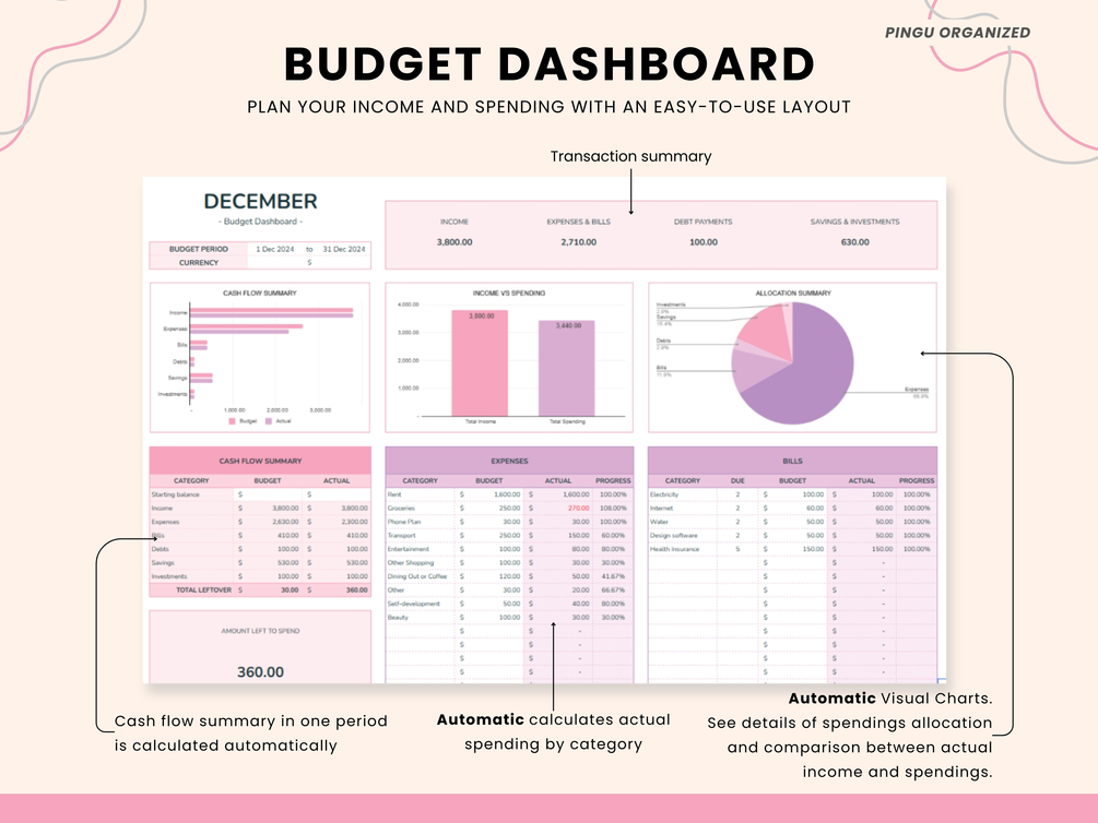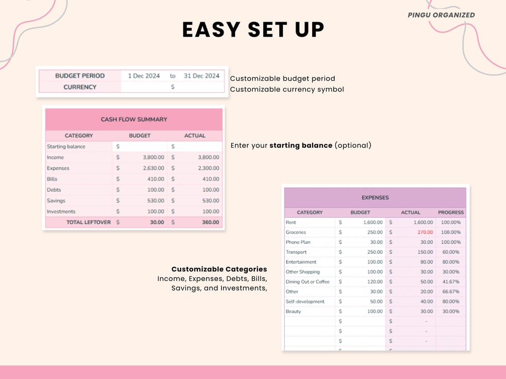- Automated Calculations: Just enter your income and expenses, and the sheet will do the rest!