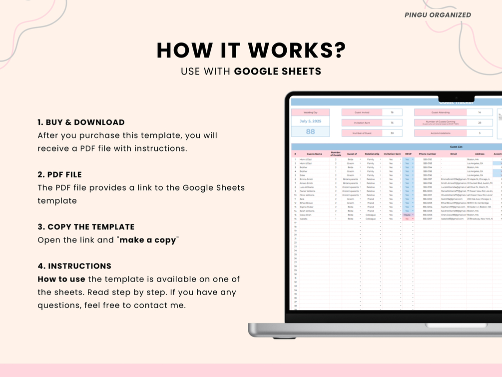 - A PDF with the link Wedding Guest List Template Google Sheets file